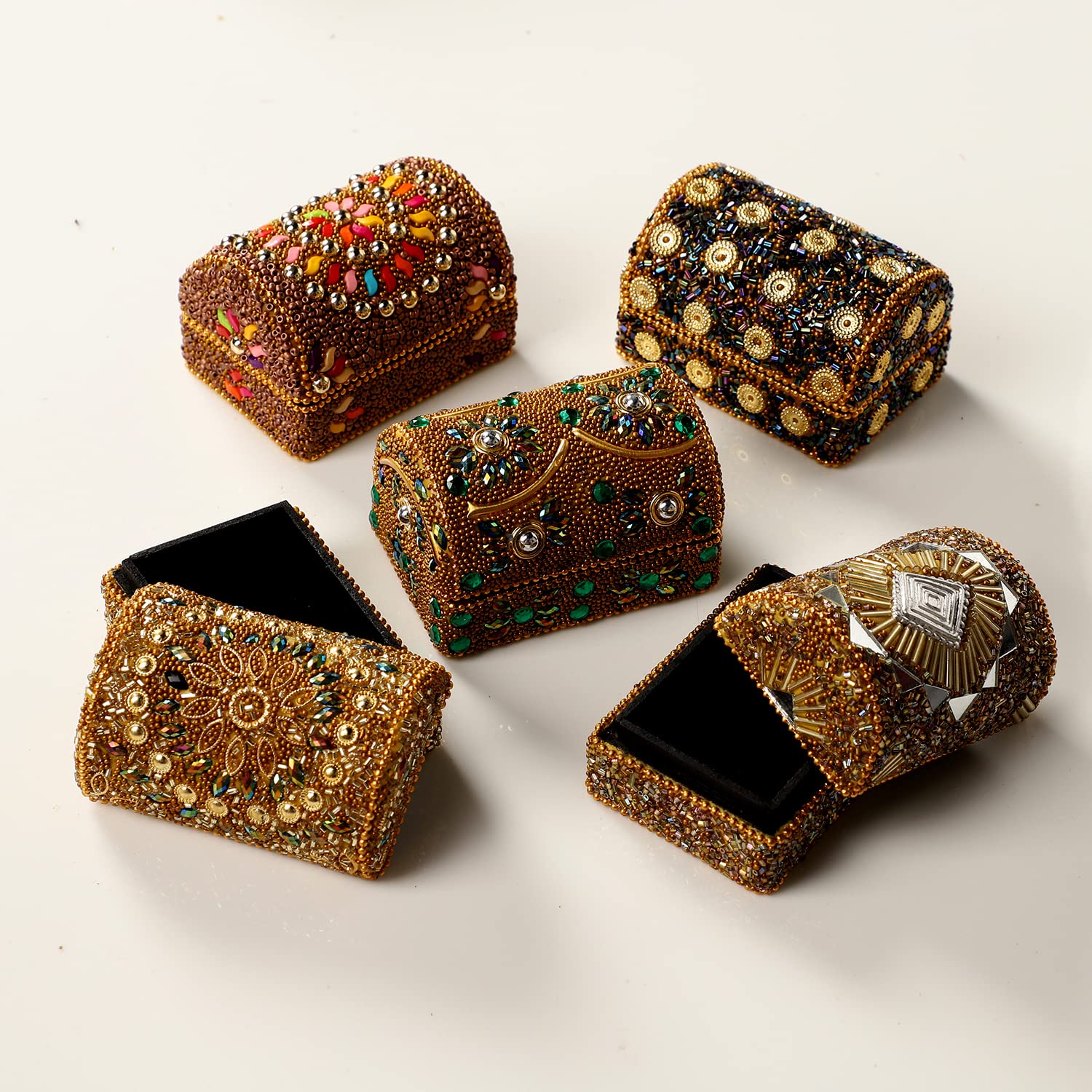 Amazon Com Shop Lc Delivering Joy Jewelry Holder Mini Treasure Chests Trinket Boxes Handcrafted Set Of 5 Gifts Keepsake Storage Box Multicolor Multi Beaded Wooden Clothing Shoes Jewelry